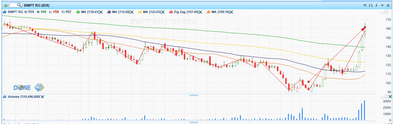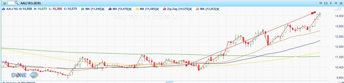 Saham AALI memiliki tren naik yang paling cepat, dengan kenaikan yang lebih stabil. Saham LSIP juga naik, namun uptrend-nya tidak secepat AALI, dan BWPT pun juga ikut naik, namun pergerakannya terlalu volatil. Hal ini juga terjadi bukan hanya di saham2 CPO, namun pada saham2 di sektor lainnya.