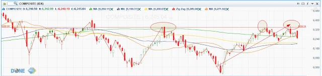 Jadi kalau IHSG sudah naik tinggi (karena banyak yang beli saham), secara konsep analisa teknikal, cepat atau lama IHSG pasti akan balik turun /koreksi sebagai respon dari aksi para trader yang ambil untung / take profit. Sebagai praktiknya, anda bisa lihat IHSG berikut ini: