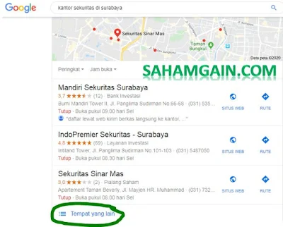 Google biasanya menampilkan sekuritas2 ternama yang dekat dengan kota anda. Untuk mencari sekuritas yang kredibel anda juga bisa terapkan seperti langkah2 di poin pertama yang saya tuliskan tadi.