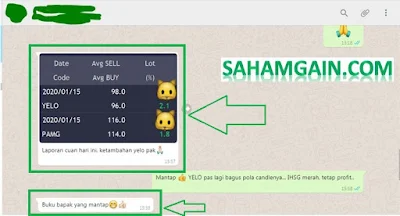 "Laporan cuan hari ini, ketambahan saham YELO. Buku bapak mantap" Profit saham YELO (2,1%) & PAMG (1,8%)