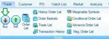 Setelah anda login melalui software online trading, anda bisa klik menu trade --> buy. Tampilannya kurang lebih sebagai berikut:
