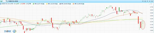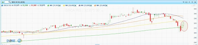 Pada kedua chart diatas yaitu saham BBRI dan BBCA (yang saya beri tanda lingkaran), adalah momen di mana saham-saham mengalami rebound setelah turun tajam, dan kedua saham mengalami rebound / naik cepat dalam waktu pendek 1-2 harian.