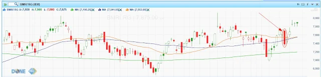 Dividend trap saham BMRI. Demikian juga dengan BMRI yang beberapa hari sebelum bagi dividen sahamnya langsung naik drastis. Namun setelah tanggal cum date, sahamnya langsung anjlok (tanda panah dan tanda lingkaran).