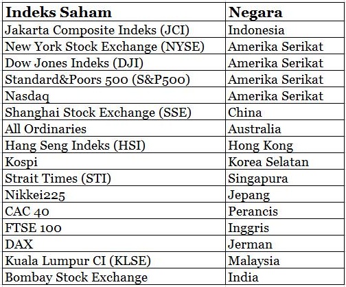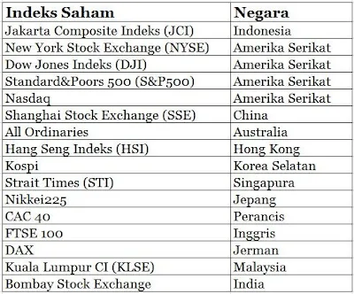 Apakah Indeks Dow itu? Apakah SSE itu? Sebelum memahaminya Anda harus tahu terlebih dahulu daftar indeks saham dunia. Indeks saham yang saya paparkan dibawah adalah indeks saham yang sering dijadikan acuan)