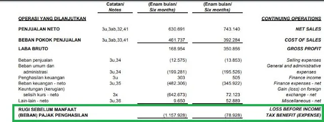 Di satu sisi, kalau anda perhatikan mayoritas perusahaan yang melakukan RSS di harga Rp50, perusahaan selalu membukukan kerugian (rugi bersih) di laporan keuangannya. Salah satu contohnya, saham UNSP yang pernah melakukan RSS. Berikut laporan laba rugi UNSP sebelum RSS dilaksanakan: