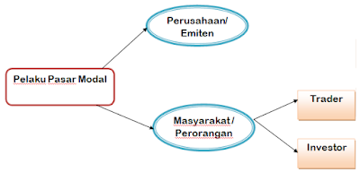 Di pasar modal terdapat 2 (dua) pelaku utama pasar modal. Pelaku pasar modal biasa disebut sebagai pelaku perdagangan saham. Pelaku pasar modal yang dimaksud adalah: Perusahaan / emiten dan masyarakat / perorangan. Berikut penjelasan lengkapnya: