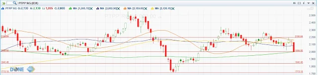 Grafik diatas adalah contoh dari analisis teknikal. Tentu saja untuk bisa membaca kecenderungan saham diatas akan naik atau turun, maka anda harus menggunakan strategi2 analisis teknikal itu tadi.