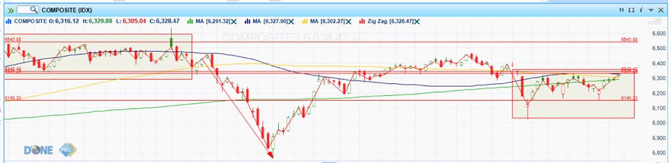 Salah satu ciri IHSG yang berada dalam tren yang tidak pasti adalah terjadinya tren sideways IHSG dalam periode tertentu. Seperti yang anda lihat diatas (kedua tanda persegi). Pada kondisi seperti itu, kita tidak tahu apakah IHSG mau bullish or bearish?