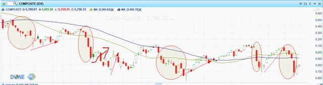 Di satu sisi, IHSG sudah rebound berhari-hari, maka IHSG cepat atau lama akan balik turun / koreksi lagi. Sehingga, bisa anda perhatikan pada grafik diatas, pola yang sama terus terjadi secara BERULANG, dan mungkin tanpa anda sadari, setiap hari inilah yang kita hadapi di pasar saham.